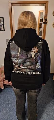 Sehr schöner Zipper Hoodie. Tolle Qualität. Schön zu tragen.Genaue Größenangaben, so dass man gleich die richtige Größe findet. Das Einzige was ein bisschen schade ist, ist dass die Mütze sehr groß ist und somit ziemlich viel vom Motiv/Schrift verdeckt ist. Aber meine Schwägerin ist sehr kreativ an der Nähmaschine, vielleicht kann sie das noch ändern. 😉. Aber so oder so schon ein Lieblingsteil und vermutlich nicht das Letzte 😊
